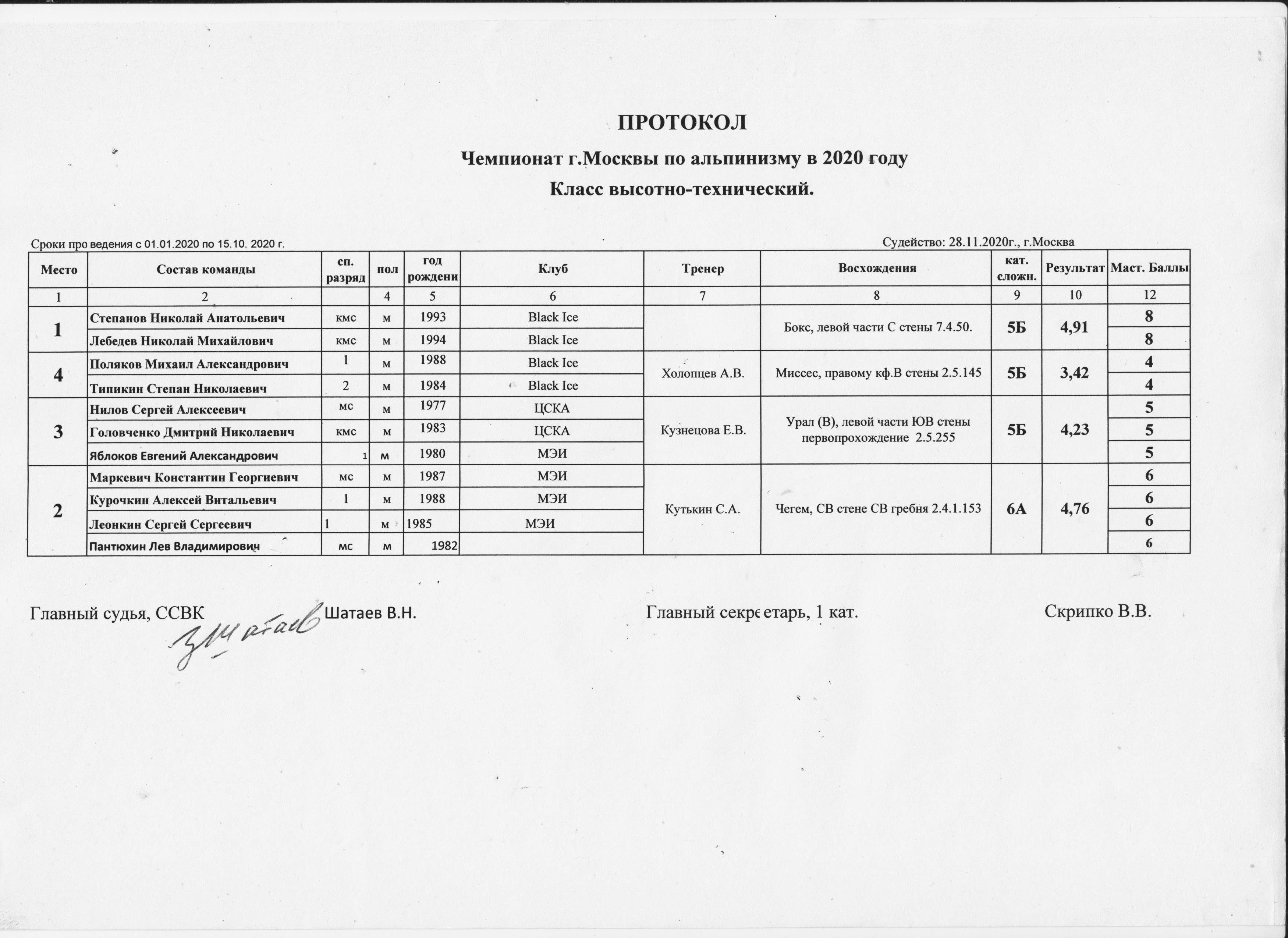 Итоговый протокол Чемпионата Москвы, класс высотно-технический 2020